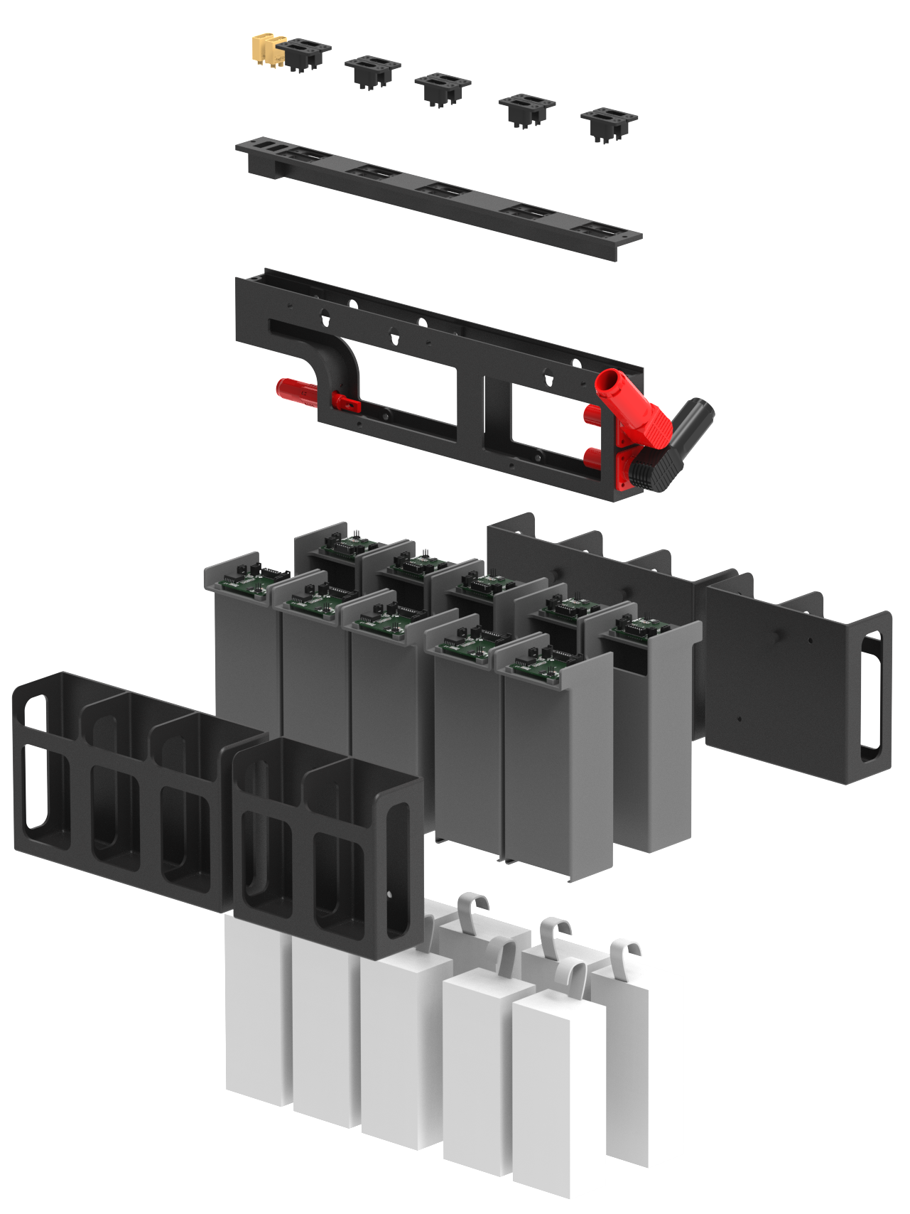 The system employs two distinct battery packs to meet its power requirements. A 24 V Low Voltage Li-Ion cell battery pack powers the control boards, while a High Voltage 220 V Li-Po battery pack, operating at nominal voltage, is used to supply power to the motor and levitation units.